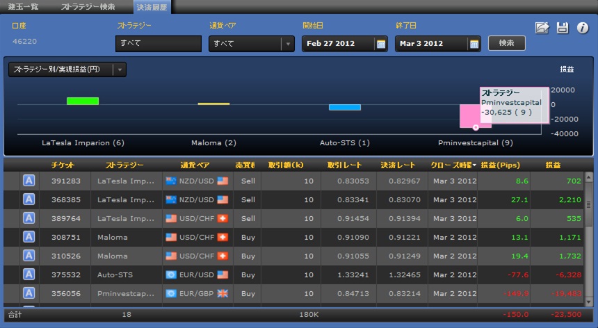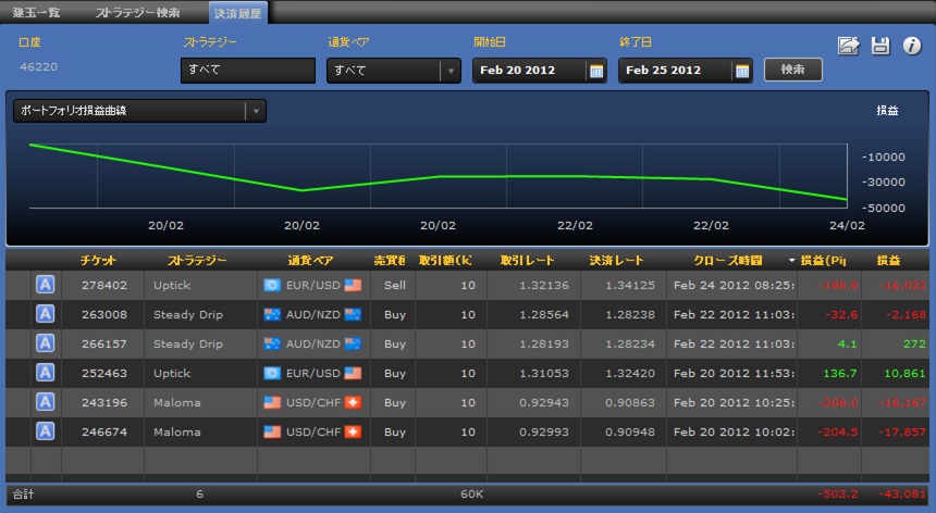 他のストラテジーも振るわず、2勝4敗でトータル-43,081円の損出となってしまった。